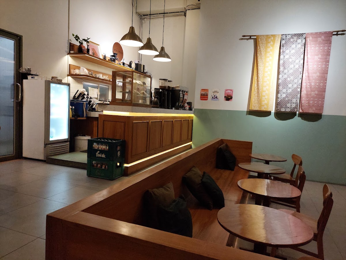 i think i found my new fav coffee shop in a town! i love the interior details they’ve put in, i love how they put three of the hanging lamps that is no wider than the table’s width (a perfect ratio to put those above one), i love how they place pillows on each chair position (so much needed for the back :D), the big windows (i could imagine how it’s looked like when it’s raining, that must’d be comfy staying here), oh & those batik clothes that is come from different areas such as semarangan, pekalongan, & the last one i’m quite sure it’s inspired from nusa tenggara’s pattern (the thoughts in choosing the color combo is great). everything is united making the perfect ambience to spend your days, i am glad i entered myself into this coffee shop ! the important part is how the coffee tastes! yes it’s good but i suggest you to go with the less sugar instead ehe p.s they got a good playlist when i stopped by